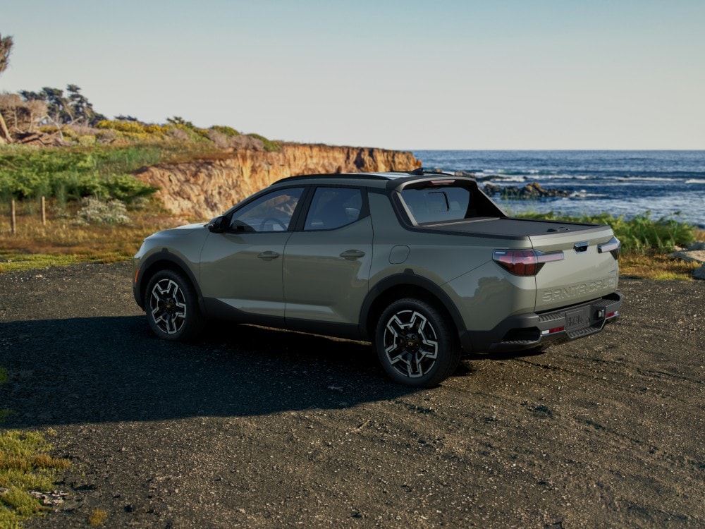 The Hyundai Santa Cruz has bold exterior styling, setting it apart from traditional pickups with its aerodynamic profile and distinctive front fascia featuring auto on and off projector beam LED headlamps. Unique dimensions create a compact pickup body style that offers excellent maneuverability, whether you're navigating the historic streets of Trinidad, CO, or heading out for weekend adventures. The integrated lip spoiler of the Hyundai Santa Cruz and available 20-inch alloy wheels on the Limited trim create a sophisticated appearance that turns heads at every trailhead.