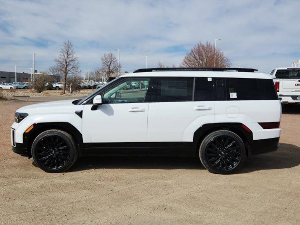 KBB Fair Market Range Low: $47,700 Serenity White 2026 Hyundai Santa Fe Calligraphy AWD 8-Speed Automatic with SHIFTRONIC 2.5L I4 AWD, Gray Leather.