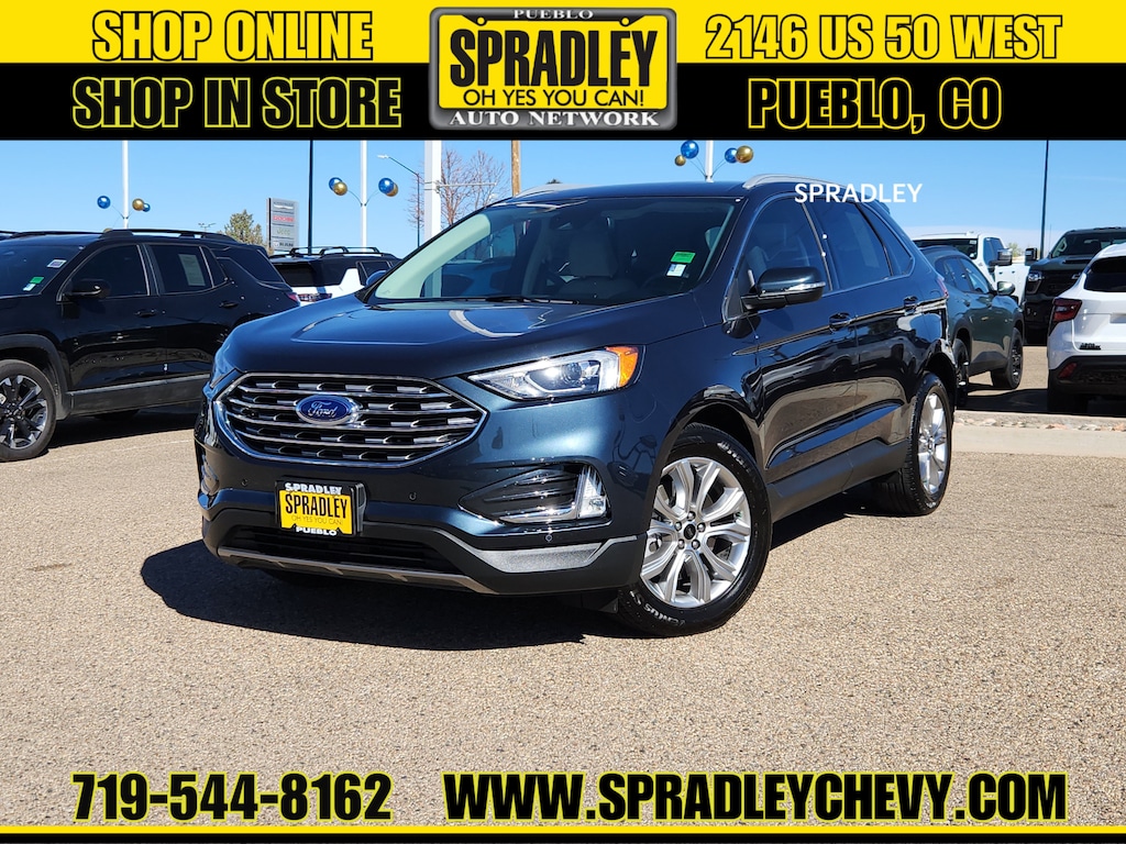 CARFAX One-Owner. Stone Blue Metallic 2024 Ford Edge Titanium AWD 8-Speed Automatic EcoBoost 2.0L I4 GTDi DOHC Turbocharged VCT AWD.