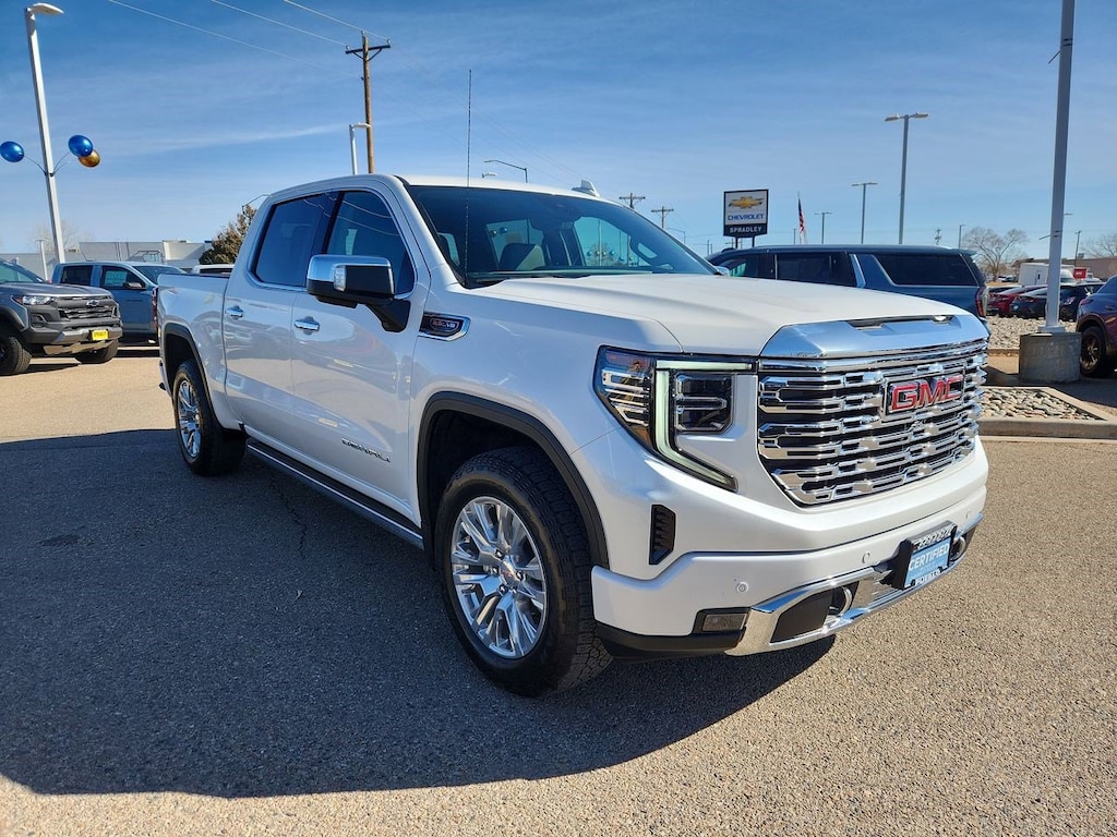 Clean CARFAX. White Frost Tricoat 2024 GMC Sierra 1500 Denali 4WD 10-Speed Automatic EcoTec3 6.2L V8 10-Speed Automatic, 4WD, Jet Black w/Perf Leather-Appointed Front Outboard Seat Trim.
